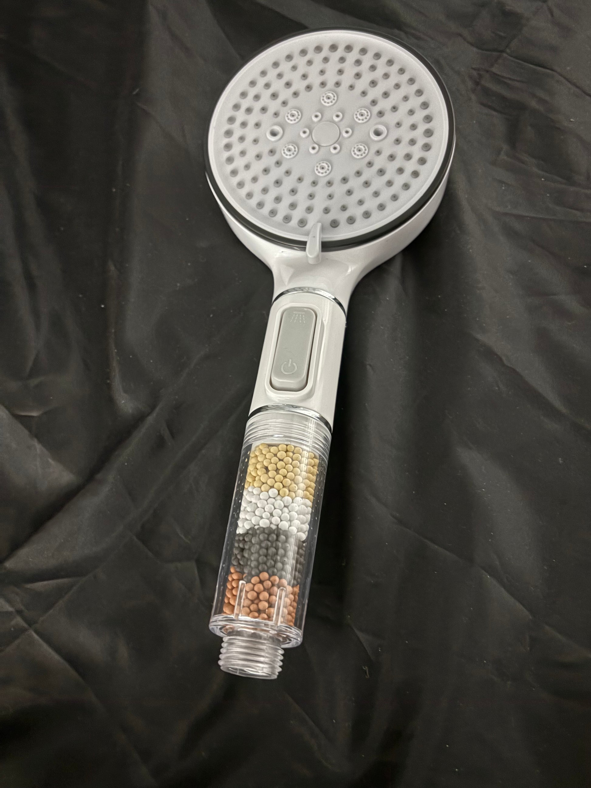 Shower head with water purifying beads